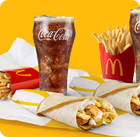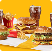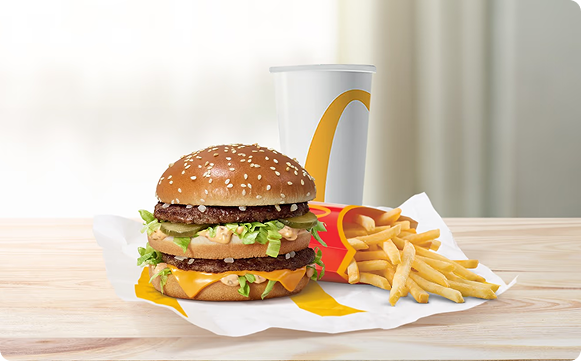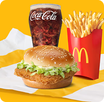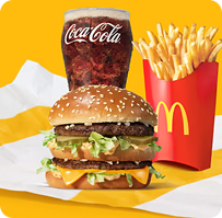 1 McChickenâ˘, 1 Big Macâ˘, 1 Royal Cheeseburger, 3 medium sized French Fries, 3 cold drinks